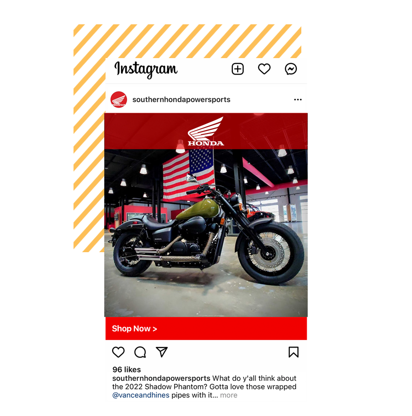 When we upload the image of the car to the feed, we can overlay a custom header and/or footer template (required for Co-Ops like CDJR) which will display on every piece of inventory for that particular campaign. NOTE: We can also embed price (on Facebook) on the image but that’s specifically for automated campaigns.